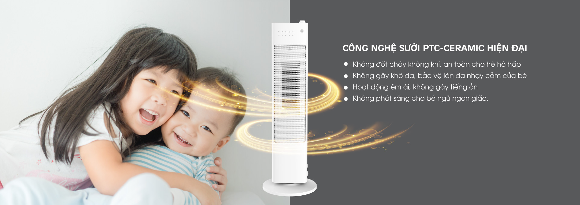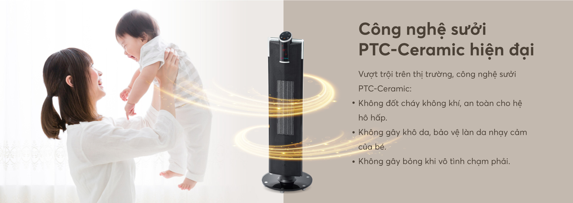 - Công nghệ sưởi PTC ceramic không đốt cháy không khí, không phát sáng, ấm nhanh-không làm khô da