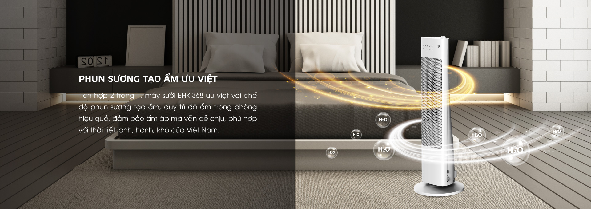 - Ưu việt hơn với tính năng phun sương tạo ẩm