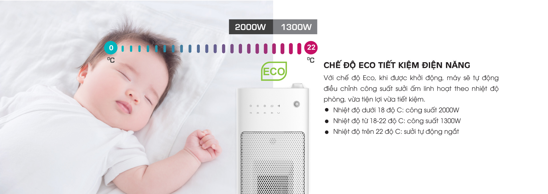 - Tiết kiệm với chế độ ECO và cảm biến thông minh